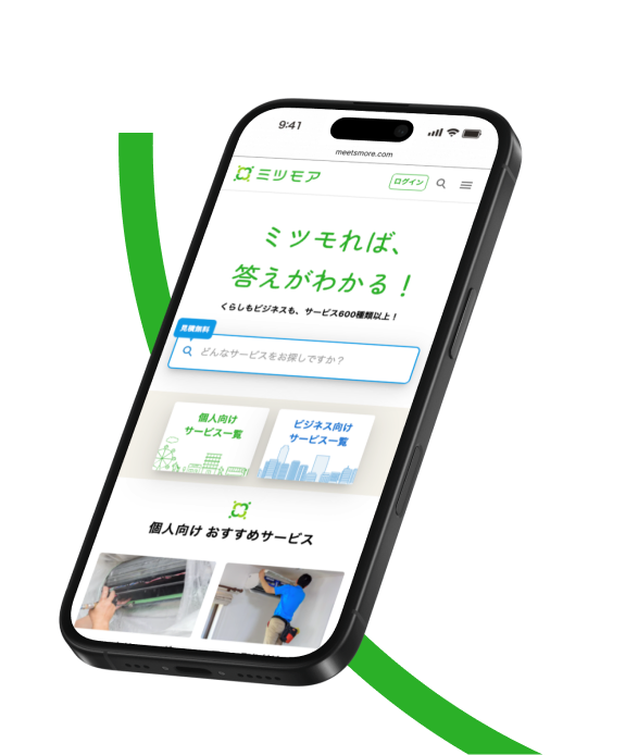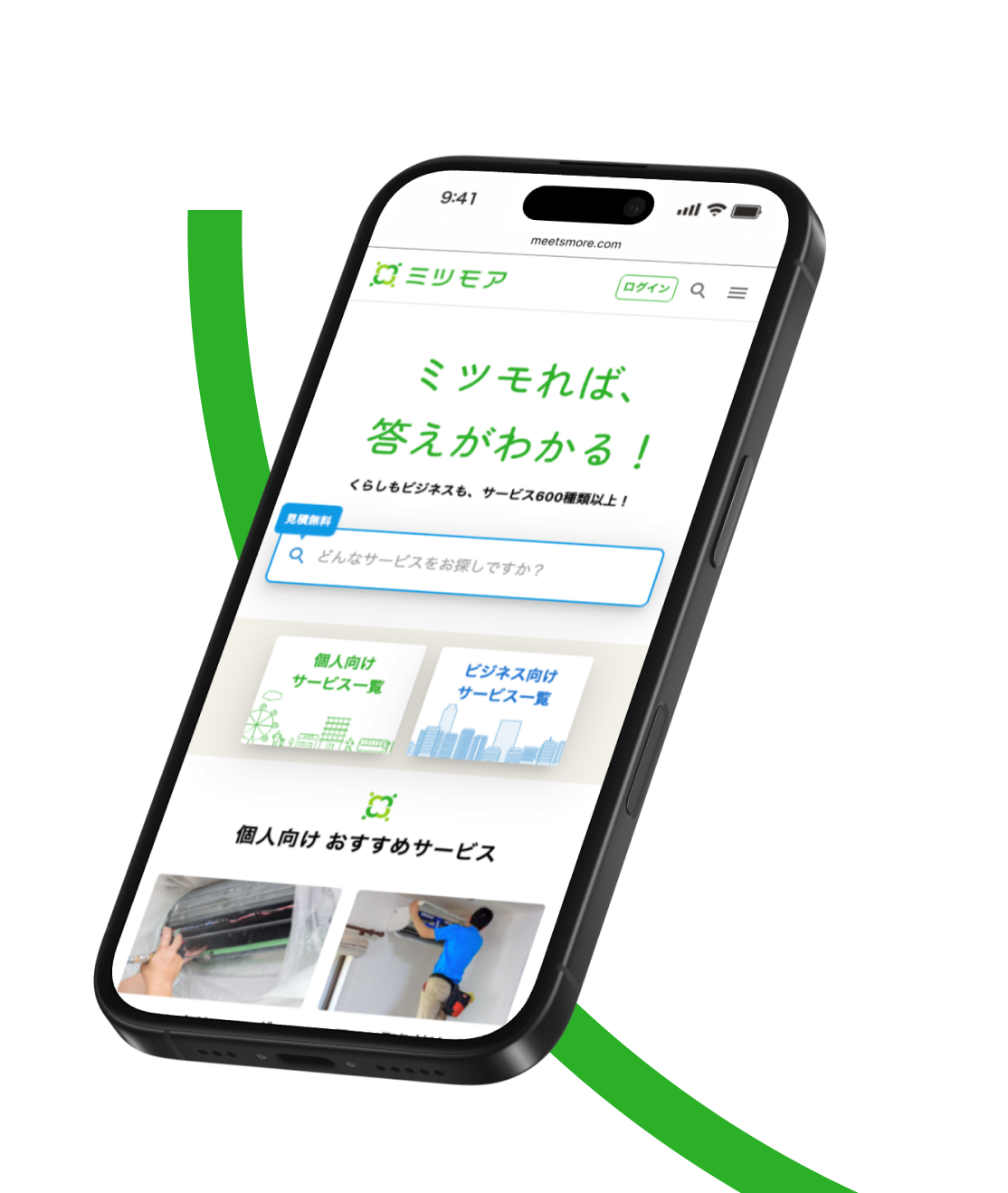 「この仕事、 誰にお願いしたらいいんだろう…」そんな疑問が家にも、 会社にもあふれていませんか?その疑問を、 笑顔に変えられるプロは存在します。「お願いしたい」「サポートしたい」依頼者とプロの想いを かんたん、ぴったりにつなぐ、それが「ミツモア」です。